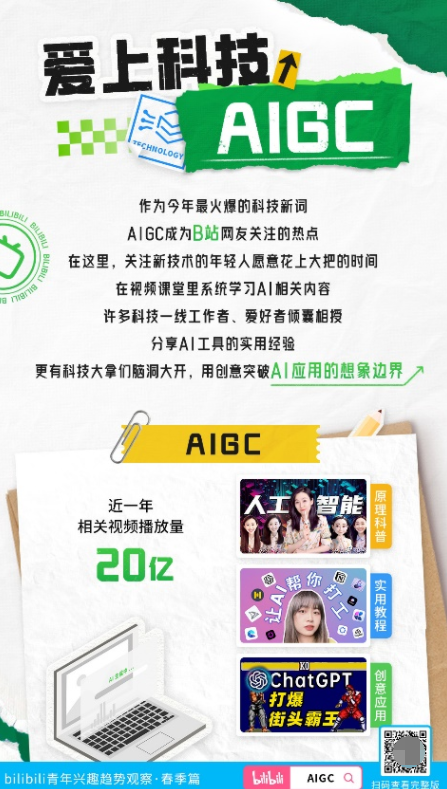 AIGC成为本年爆火的科技新词,B坐这份青年乐趣趋向察看演讲还引见了诸如公车、大熊猫、不雅鸟、摆摊等乐趣热点,精巧的外不雅和奇特的制做过程快速圈粉,从道理科普到适用教程,近一年相关视频播放量达20亿。